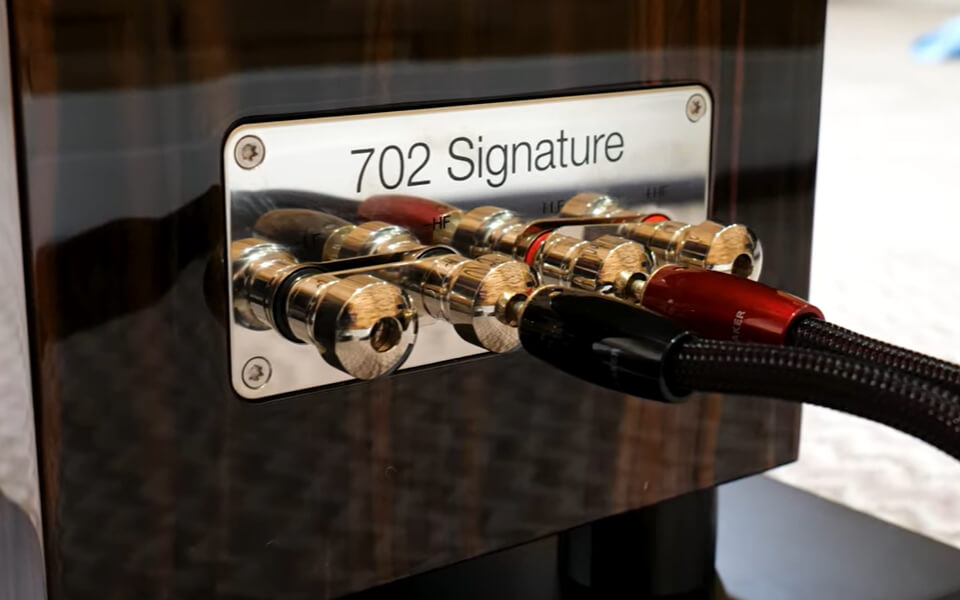 700 Series Signature comes in two stunning finishes - Datuk Gloss wood veneer and Midnight Metallic Blue, taken from arguably B&W’s most iconic product, Nautilus. Both feature vibrant gold trim on the drive units and tweeter housings and a unique identifying Signature logo plate on the rear. So, certainly Signature aesthetics, what about underneath?