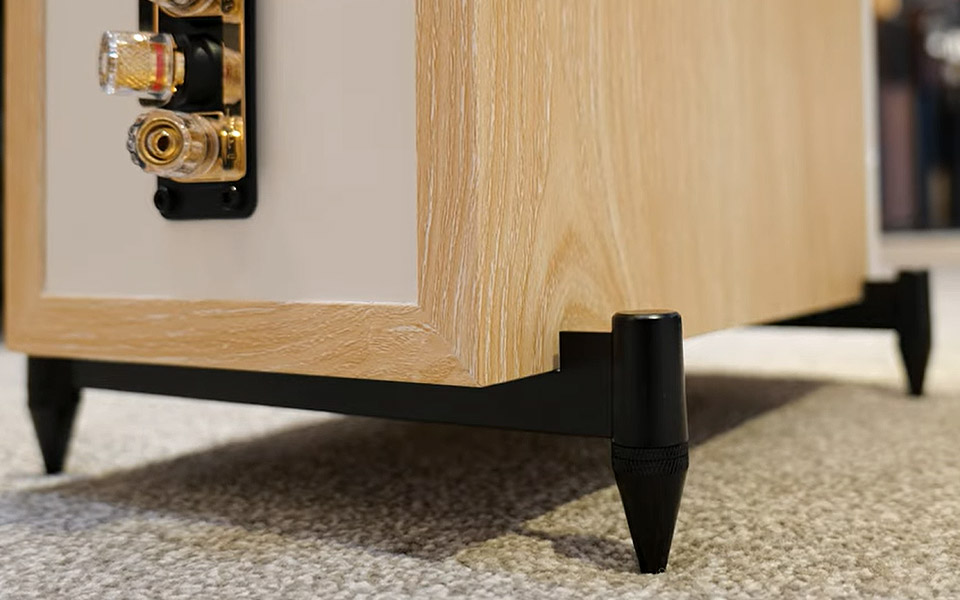 When you have the perfect position, spike and level! Stability rules: wobbly speakers produce unwanted vibration that compromises sound quality; levelling ensures drive units are properly aligned to perform as designed – just use the adjustable spikes and a spirit level. For stand mounts, anchor speaker to stand (Blutack works fine if no spikes) and stand to floor.