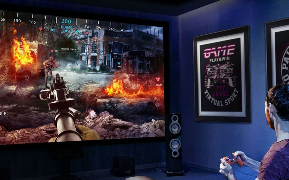 Another factor in creating the perfect gaming experience is a strong refresh rate. Measured in Hz or frames per second, the refresh rate determines how smooth your gameplay will be as the monitor or screen keeps up with the game’s graphics and motions. Our gaming projectors have up to 240 Hz refresh rate, ensuring a fluid and visually impressive gameplay experience.