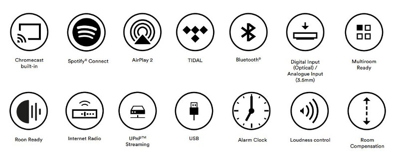 • Chromecast built-in Google’s streaming service allows you to seamlessly link to 100s of supported apps, including Deezer, Qobuz, Plex, TuneIn, SoundCloud and Pandora.